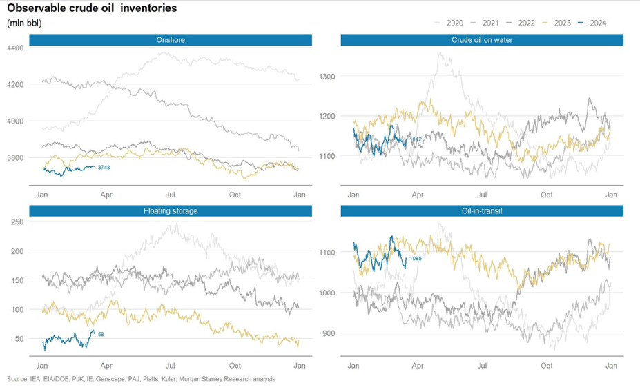 To give you a sense of how significant the inventory draws to start the year and the flat to small builds for crude in March were to shifting market sentiment back out of the chasm of bearishness in December 2023, consider the following.