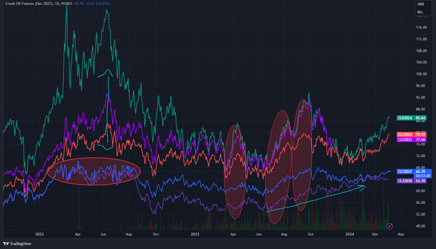 I will be keeping a close eye on the long dated futures as a signal crude prices may be running away or to confirm this rally has staying power.